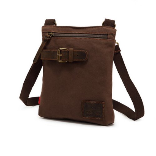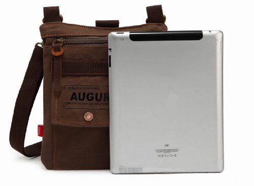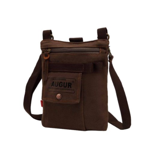 -. Title : AUGUR Canvas Unisex Fashionable Universal Leisure Cross Body Single Shoulder Bag Waist Pack 21x3.5x27cm - Coffee