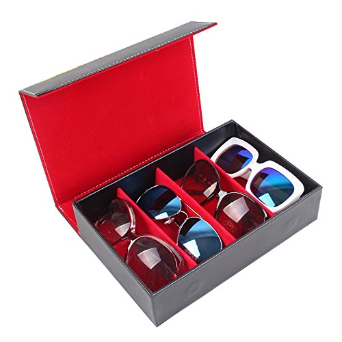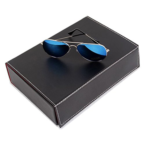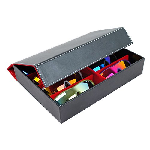 -. Feature : Surface material: high-quality faux leather that is moisture-proof and easy for cleaning and maintenance; Inner cloth: color-fast yellow flannelette / 4/8/12 compartments hold glasses in place; Handsome accessory for your nightstand, desk, or dresser / Perfect for storing and displaying your favorite eyeglasses and sunglasses in one convenient and attractive place, or use the case to store ties, coins, or a variety of collectibles / An elegantly designed black storage box perfect for any tabletop surface. Magnet closure. / Approximate Dimensions: 4-Slot Glasses Case: Exterior - 9.6" W X 2.4" H X 6.7" D; Each Interior compartment - 6.3" W X 2.4" H X 2.4" D. 8-Slot Glasses Case: Exterior - 12.8" W X 2.4" H X 10" D; Each Interior compartment - 6.3" W X 2.4" H X 2.4" D. 12-Slot Glasses Case: Exterior - 18.9" W X 2.4" H X 10" D; Each Interior compartment - 6.3" W X 2.4" H X 2.4" D.