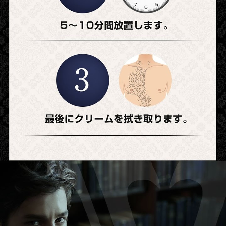 | 使用方法 | 除毛する部位に毛が覆われる位の厚さ(1~3mm程度)をムラなく塗布し、通常5-10分間放置した後、同梱のヘラやティッシュなどでこすらないように拭き取ります。その後、除毛した部位を湯水等で洗い流してください。 ※毛の根元に本品が行きわたらず、毛の途中からつけた場合は完全に除毛できませんのでご注意ください。 ※洗い流す際、石けん類・ボディブラシなどは肌に刺激となりますので使用しないでください。 指定時間内に除毛しきれなかった場合は、それ以上放置せずに洗い流し、2・3日おいてからご使用ください。 |