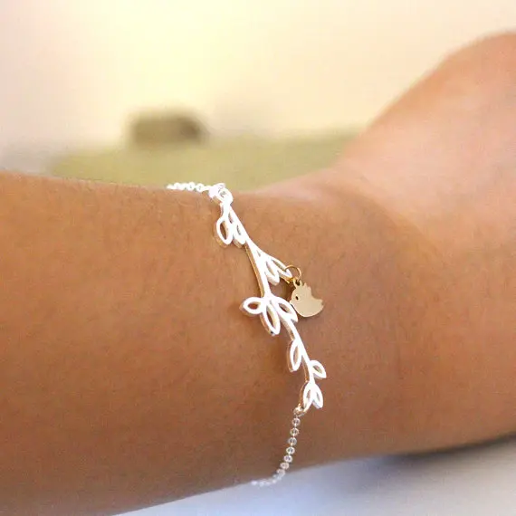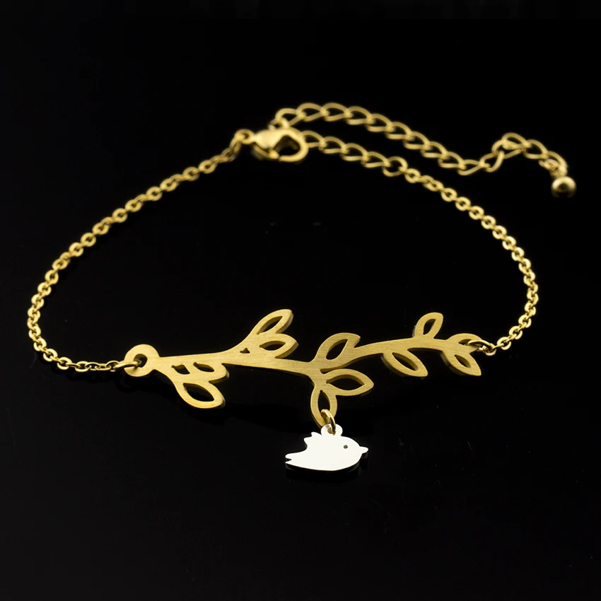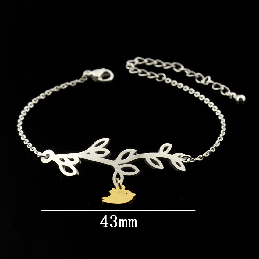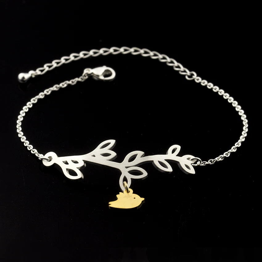Name:Women Beach Bird on Branch Anklets Bracelets Silver Stainless Steel An