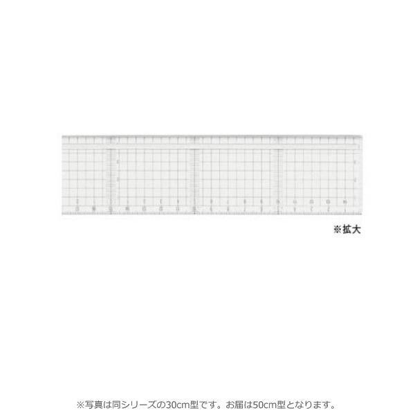 ステンレスエッジを特殊接着したカッティング作業専用の定規です。5mm方眼目盛りと1mm平行目盛りが入っているので、水平垂直が見やすく便利です。 |
