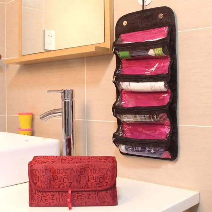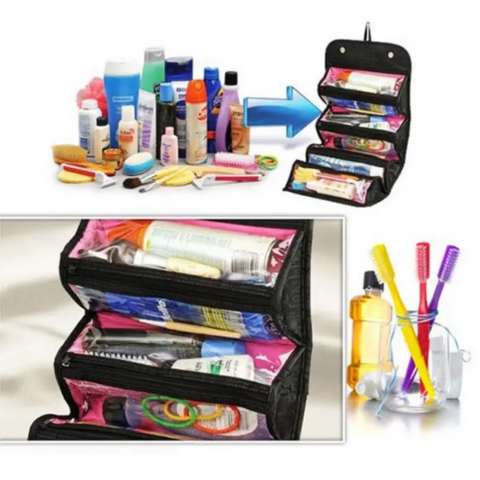 Fashion Lovely Cosmetics Organiser Makeup Bag Hanging Toiletries Pockets Compartment Travel Kit Roll-N-Go Jewelry Bags L
