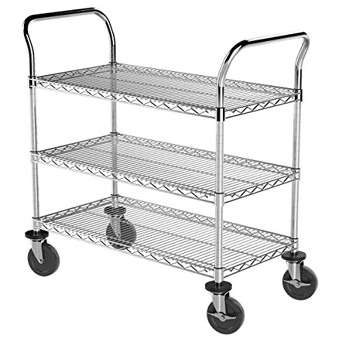 Commercial Grade NSF Certified All Purpose 3 Shelf Chrome Wire Utility Cart