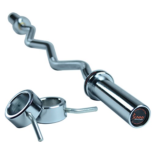 Studio : Sunny Distributor Inc. Publisher : Sunny Distributor Inc. Binding : Sports Product Description Complete your workout with the Sunny health and fitness OB47 Olympic Curl bar. This bar has a standalone weight of 16 lbs. The loadable sleeve length of 7 inch allows for multiple plates to be added to increase/decrease weights accordingly. The bar includes locking ring collars to securely keep the weight plated) in place. The multiple hand grip positions leverages the arms to perform curls more efficiently and target certain areas of the forearms and biceps. The diamond knurled grips makes the bar safer, and easier to handle when working out. Rotating sleeves, and solid bare steel look, make the OB47 Olympic Curl bar perfect in reaching your strength goals. 0