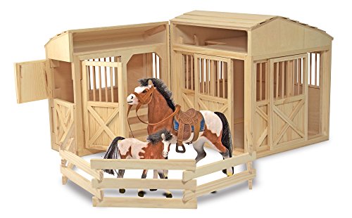 Wooden play stable with hayloft and paddock