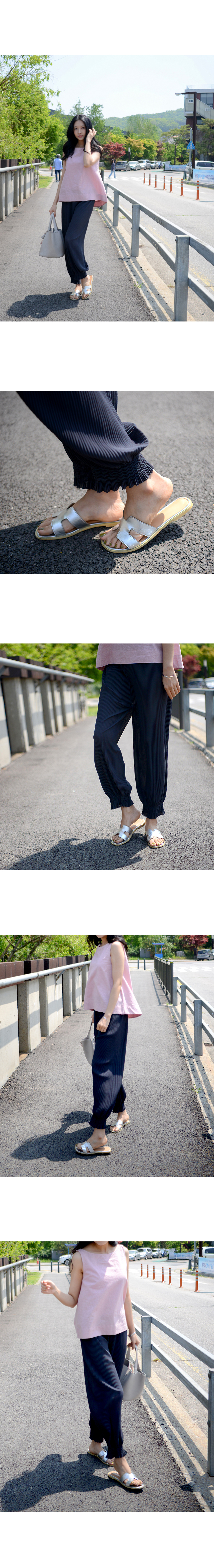 잔잔한 기계주름의 시원한 소재감에 밑단에서