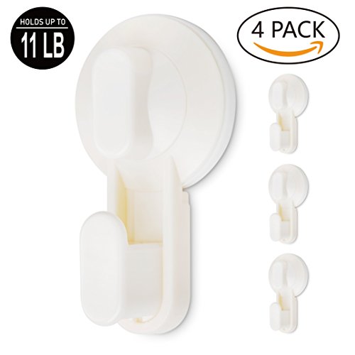 Plastic Vacuum Suction Cup Hooks for Kitchen, Bathroom and Home Organization, Space Saving, 4 Pack, Light Beige