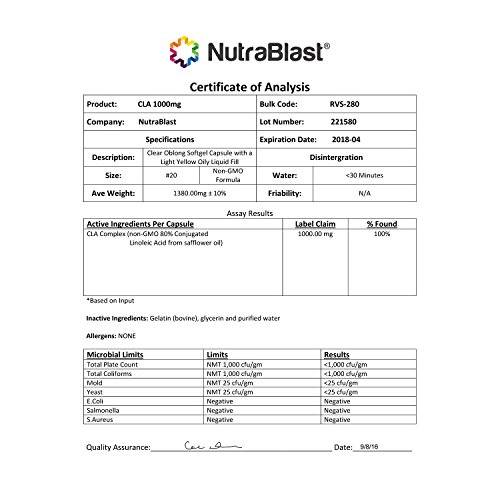 -. Title : NutraBlast CLA Complex 1000Mg Linoleic Acid from Safflower Natural Weight Loss Supplement - Non-GMO - Supports Immune System, Bone, and Cardiovascular Health - Made in USA (100 Veggie Capsules)
