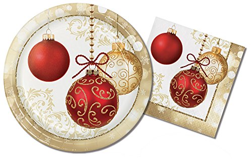 Creative Converting Opulent Ornaments Christmas Holiday Plates and Napkins Party Supplies Kit for 8 Guests