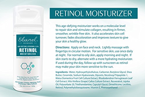 Ebanel Advanced Retinol Moisturizer features a combination of Retinol, Hyaluronic Acid, Vitamins & Peptides, and Antioxidants that resurfaces the skin by boosting collagen production and stimulating cellular renewal to reveal a healthy, radiant complexion.