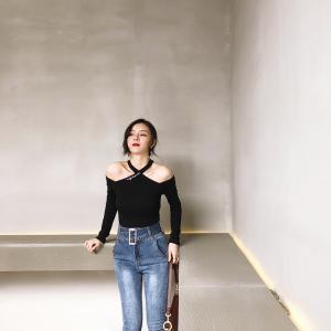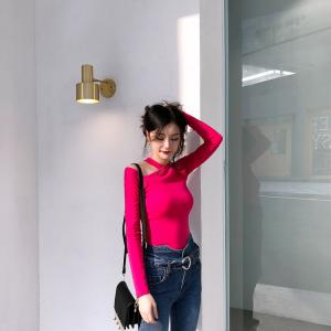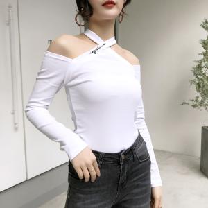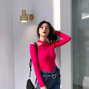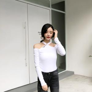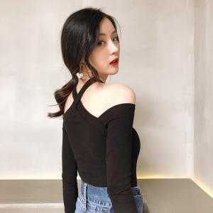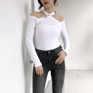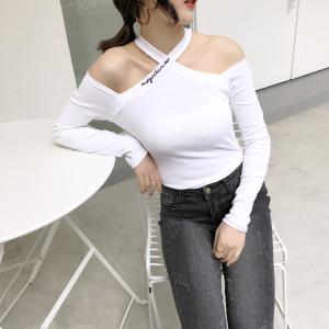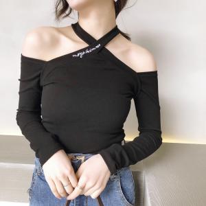 タイトトップス クロス 長袖 セクシー スリムトップス オープンショルダー カットソー Tシャツ 春 秋 プチプラ