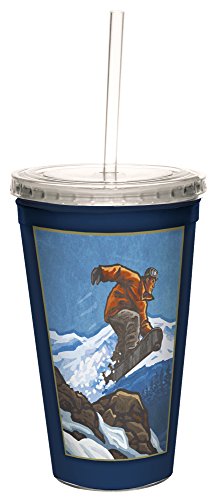 Tree-Free Greetings 98081 Paul A. Lanquist Snowboarder Double-Walled Cool Cup with Reusable Straw, 16-Ounce