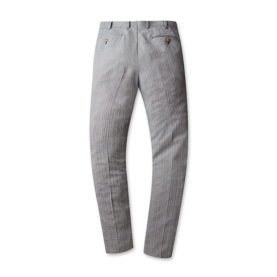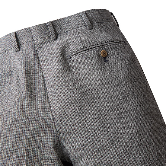 - 마이크로 패턴의 멜란지 조직감 원단을 적용한 남성 팬츠.