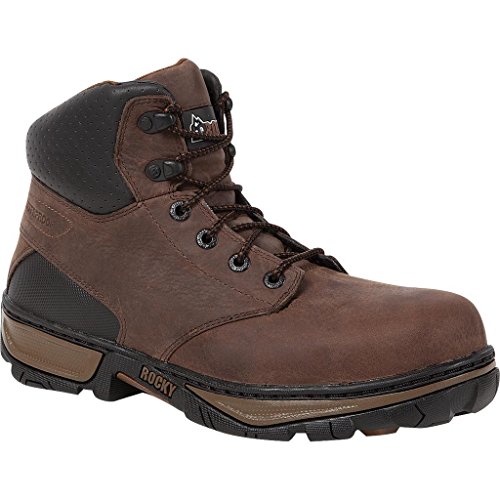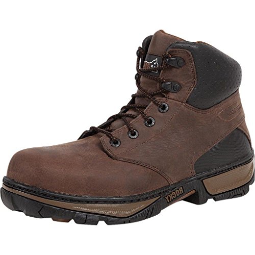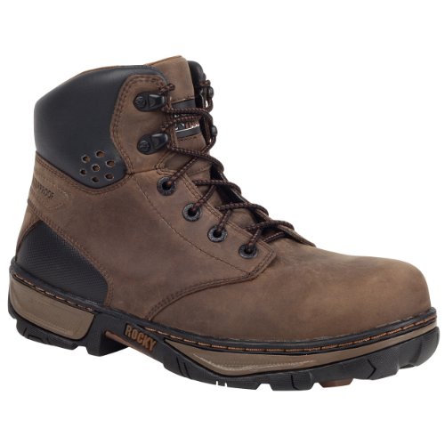 Studio : Rocky Publisher : Rocky Binding : Apparel Product Description Great looks and true comfort are skillfully rolled into one attractive package with these work boots from Rocky. With a safety toe and electrical hazard protection, these handsome brown and black boots are ready to work. The outside of these waterproof boots feature a sturdy full-grain leather 6" upper. Your feet will be taken great care of with a flexible PU footbed and a rugged slip and heat resistant outsole. Durability, stylish looks and real comfort are equally high priorities in this pair of striking Rocky work boots. 0