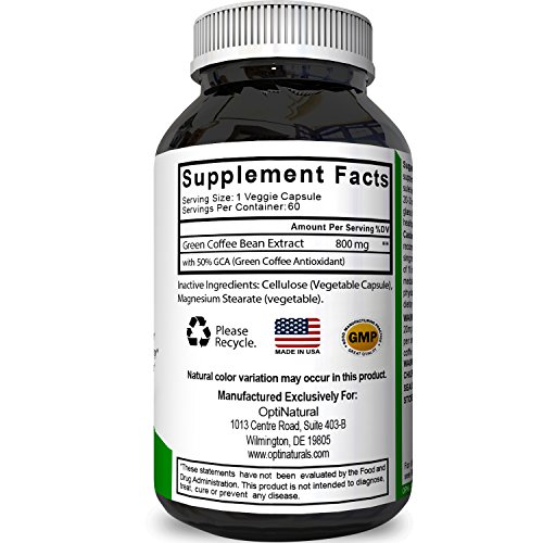 100% Customer Satisfaction. Contains 60 fast acting green coffee bean extract capsules. Is produced in a facility that exceeds GMP standards.