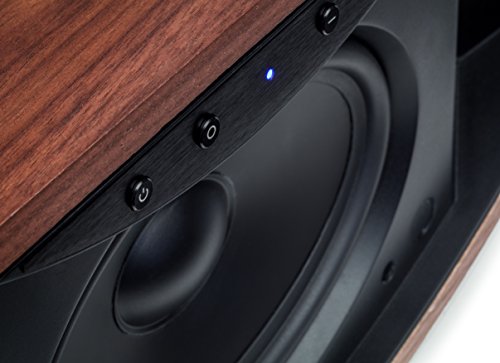 Our dedicated in-house design and engineering team created the ultimate table-top speaker system in a sleek, compact design without compromising sound quality. Taking a no-compromise approach. The dense cabinet enclosure floats atop a sturdy aluminum stand and looks comfortably at home in any decor where aesthetics are as important as sound quality. A cleanly integrated, front mounted control panel allows access to power, input and volume controls. For across the room control, Crescendo includes a custom remote control built from black anodized extruded aluminum. At the core of the Crescendo is an advanced 24-bit 48kHz DSP (digital signal processing) based preamp in conjunction with a powerful 100-watt (140-watt peak) amp. Crescendo's amp creates powerfully detailed sound from a custom designed front-firing 5x7-inch matte black polypropylene cone woofer in a non-resonant asymmetrical chamber format. Low frequencies are seamlessly blended with two of Martin Logan's high-performance Folded Motion tweeters for an astonishing, room filling experience. The signature Folded Motion tweeters utilize extremely low mass diaphragms that "squeeze" air, and require significantly less excursion than the typical 1-inch dome tweeter, which drastically minimizes distortion while providing a lightning fast response time. The increased surface area also provides a wide, yet controlled sound dispersion to create a realistic and carefully etched sound stage. Crescendo is crafted with a solid MDF enclosure that strengthens and intensifies low-frequency bass performance while minimizing vibrations. To further enhance bass performance, Crescendo features an optional subwoofer output via an analog RCA connection. This option, not typical of tabletop speaker systems, customizes the crossover between the Crescendo and subwoofer to give true audiophiles the ability to supplement the low-frequency performance of their system.Feature