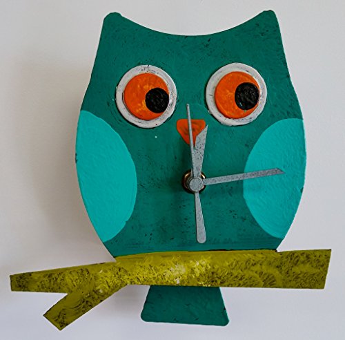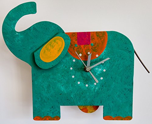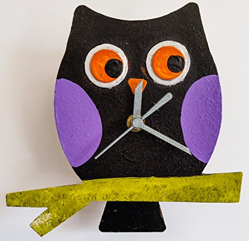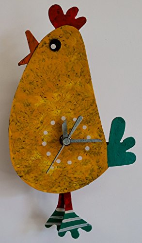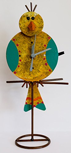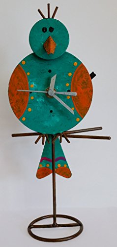 Oxidos desk clock with swinging pendulum. Oxidos Clocks are designed with a touch of art and color to bring a smile to our customers. The pendulum swings back and forth. Requires one AAA battery (not included).Feature