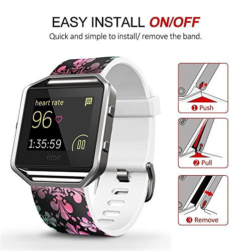 -. Title : Fitbit Blaze Accessories Classic Band Large, Soft Leather Replacement Sport Strap Band with Quick Release Pins for Fitbit Blaze Smart Fitness Watch Black Pink patterns
