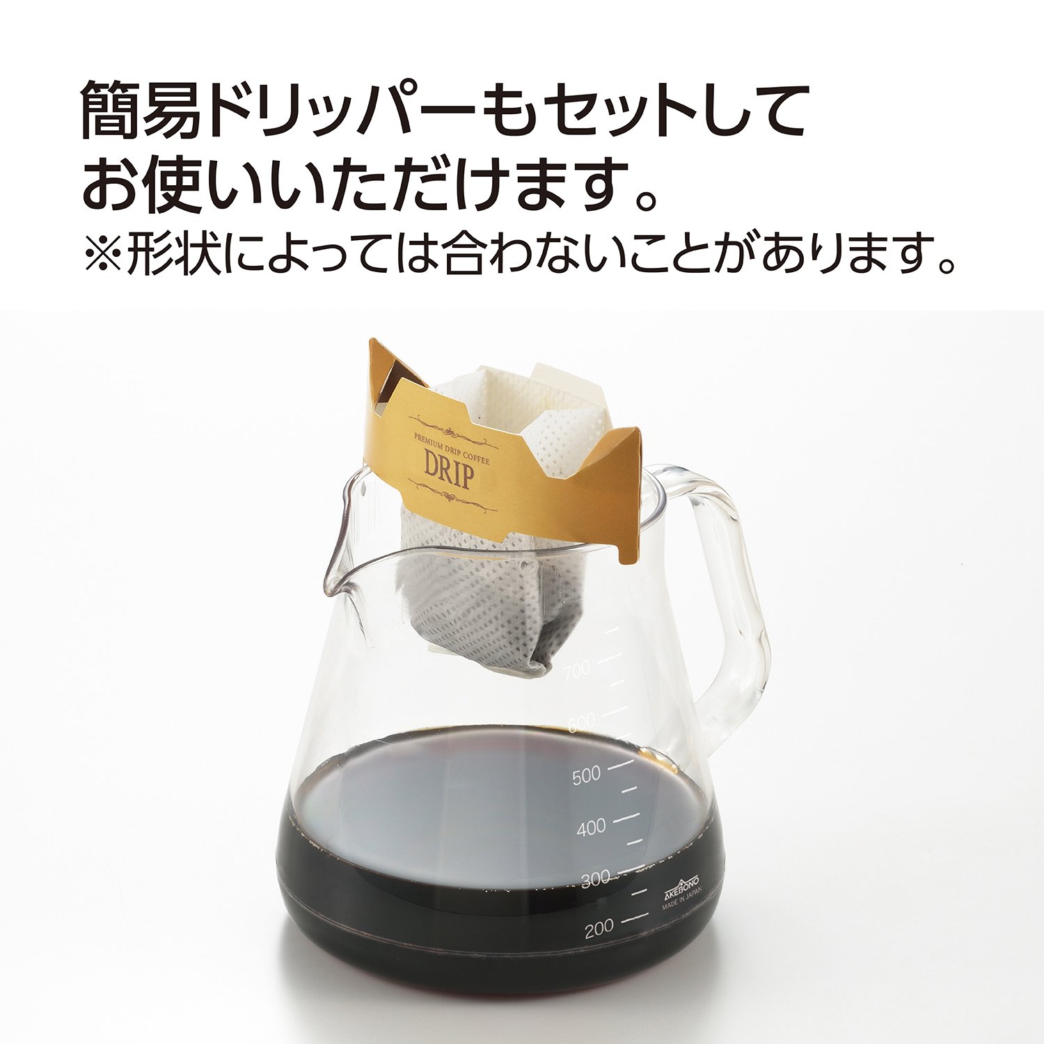 About the tritan resin made clear tray pot 480 ml clear TW - 3717 of this company, it is a person who reviewed as "excellent as a cracking coffee server". I informed the manufacturer that I reviewed it here, and it was that coffee server was also under consideration for commercialization. The result is exactly this. I was liked to have received an improved version called Clear Tea Pot L Stainless Mesh TW - 3722 after being pointed out that tea leaves leaked tea leaves. Although it returns to the evaluation as a coffee server, it seems that the disadvantages of Tritan resin are minimized, the advantages are utilized to the utmost, and at the moment there is not particularly dissatisfaction at the moment. In addition, it is easy to use the drip mode of the electric pot by lowering the total height by storing the dripper part in the server body as below. (1) Attach a metal filter for Afu Seisakusho's cafeteria · coffee dripper directly. (2) CELEC Coffee filter Install a V - 2 coffee filter for dripakopot. (3) Attach a glass or porcelain conical dripper with the base removed. (1) conforms directly whether the diameter of the opening is "calculation" or "coincidence". (2) is easy to deform the large-sized clip retrieved at 100 and make an adapter.