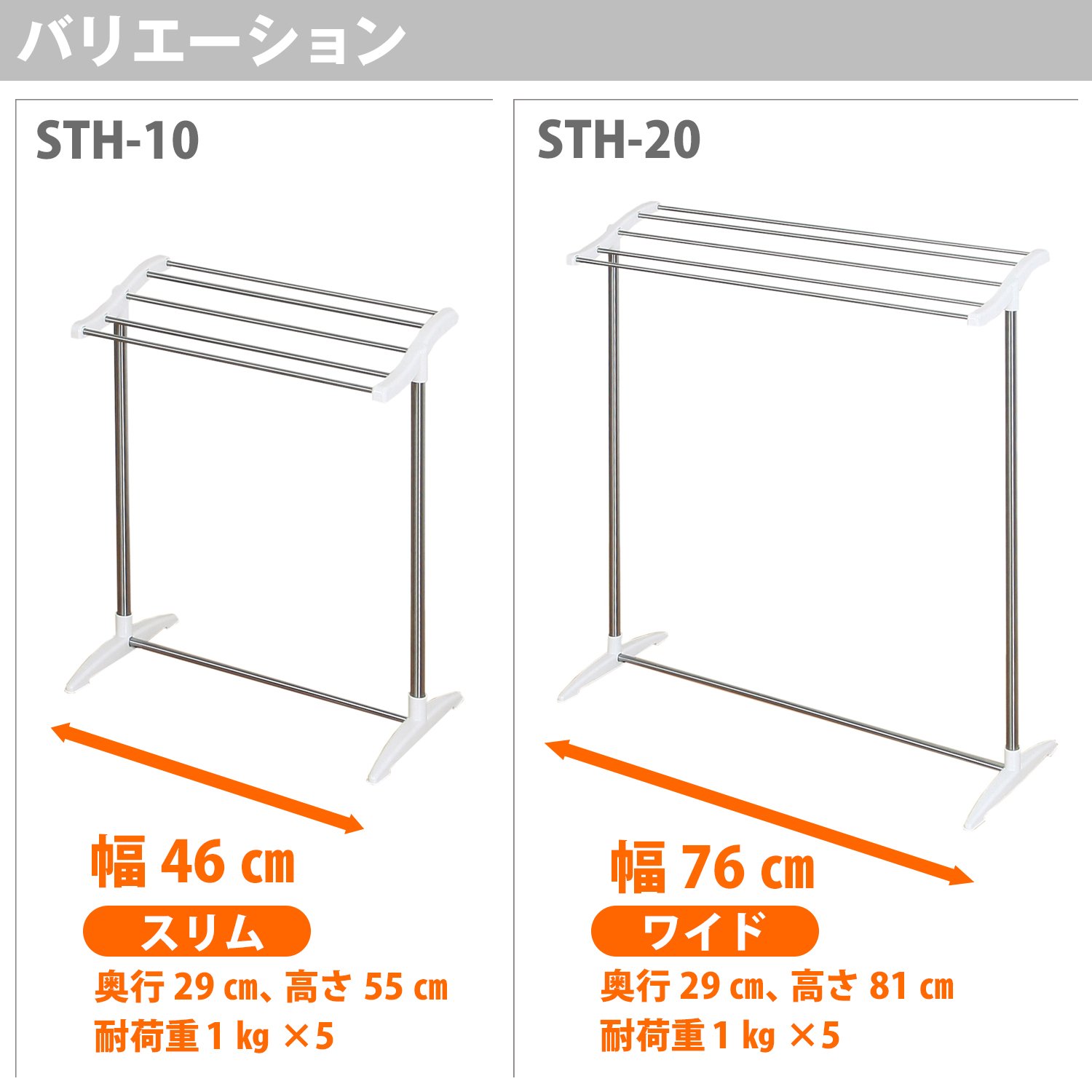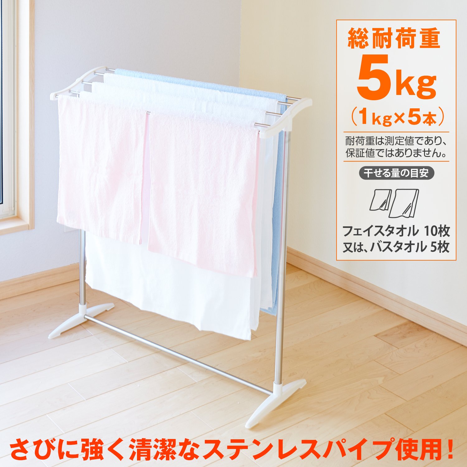 ● 5 towels of width 70 cm can be dried