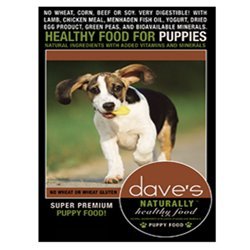 Dave's Pet Food Naturally Healthy Puppy Dry Formula is an all natural, healthy formula with added vitamins and minerals to make a complete and balanced meal. This formula uses higher protein levels to help aid your puppy in growth and their high energy demands. The lamb meat used is hormone-free and easy to digest. Yogurt is added for a natural source of probiotics as well as farmer's cheese and skim milk that will help your puppy develop strong bones and a healthy digestive tract. Added Menhaden Fish Meal is used for a natural source of Omega 6 and 3 fatty Acids to give your puppy a healthy coat. This formula has no wheat, wheat gluten, corn, beef or soy.Feature