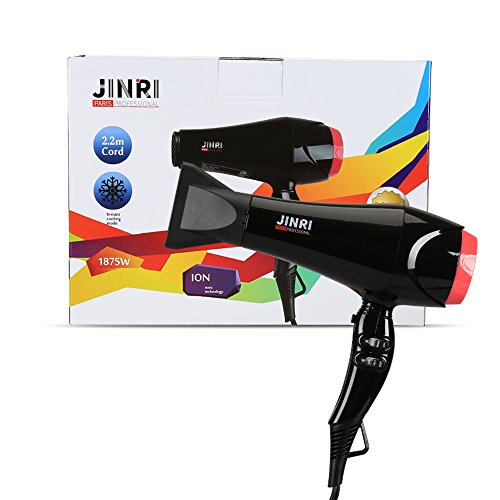 JINRI Professional 1875W AC motor Hair Dryer Negative iron Dryer 2 Speed 3 Heat Settings and Cool Shut Button Blow Dryer with Removable Rear Filter and...