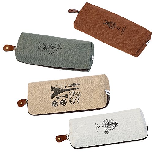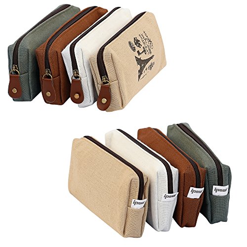 Set of 4, Ipow Hot Vintage Canvas Student Pen Pencil Case Coin Purse Pouch Cosmetic Makeup Bag