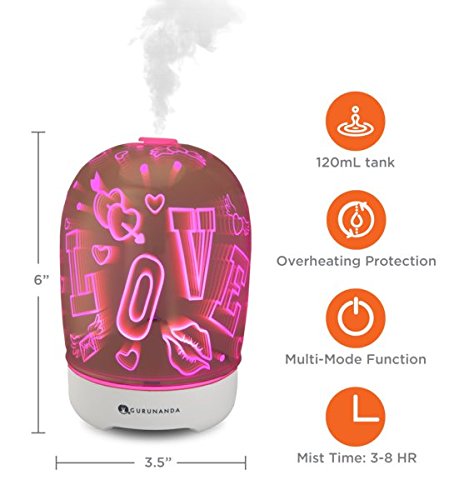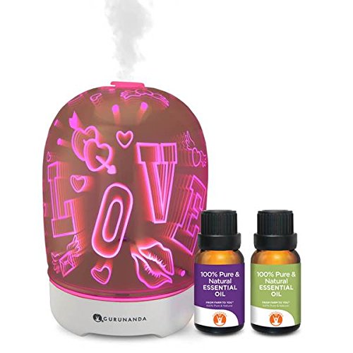 GuruNanda Aromatherapy Love Diffuser, 3D Glass for Relaxation and Visual Appeal, Essential Oil Diffuser Kit for Home, Office, Yoga, or Baby. Perfect Gift Idea - Essential Oil Diffuser Starter Kit