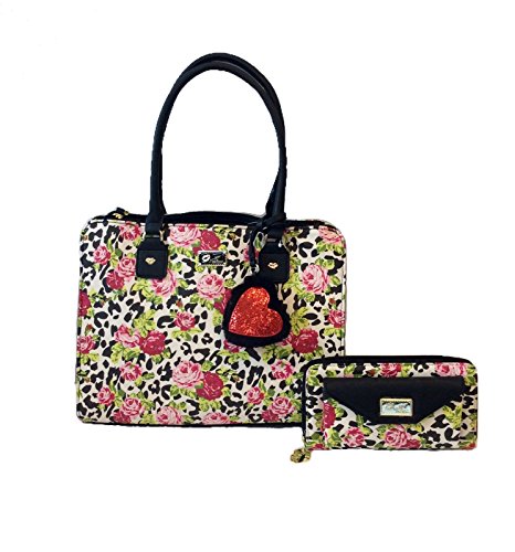 Betsey Johnson Cheetah Freesia Multi Compartment Satchel with Convertible Wallet Crossbody Bag