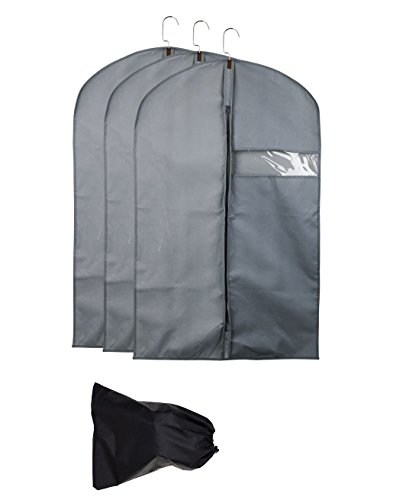 -. Feature : Smart Black Garment Bag - 40 inches long. Ideal size for suits, jackets, blazers, shirts etc. / High Quality Material- Made of premium fabric and PVC, it's quite durable. Including 3 garment bags and 1 shoe bags. / Clear Window Design- Quite easy to see what's inside and find what you're looking for. / Multi-Functional: Perfect for storing your seasonal clothing, transportation and travel. Moth and water resistant. / Built To Last: A reinforced zipper & hanger opening ensure this suit carrier will last a lifetime
