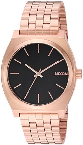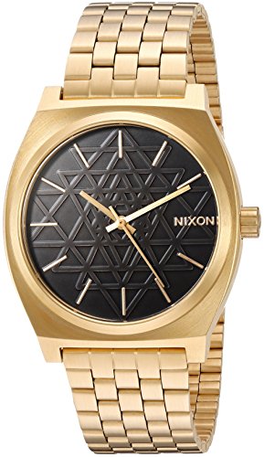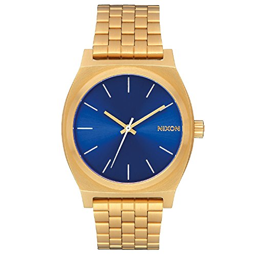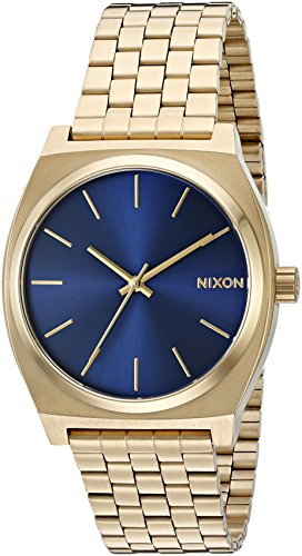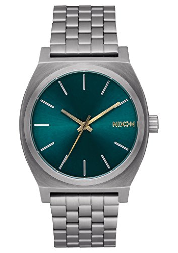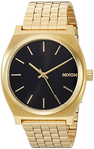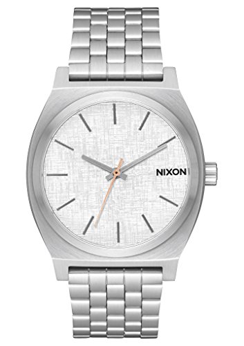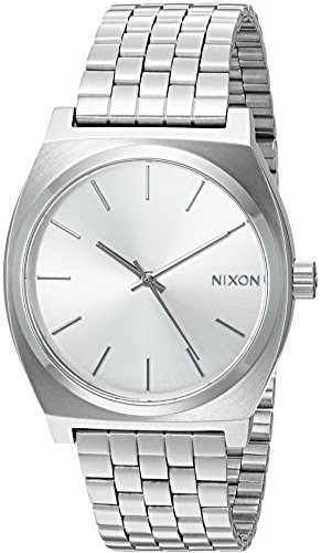 Punctuality will never be a thing of the past. Now is the time to be on top of your shhhh . . . Do it to it with The Time Teller watch from Nixon®. Custom solid stainless steel case and solid stainless steel fixed bezel. Hardened mineral crystal. Triple gasket stainless steel crown, stainless steel screw down caseback and spring pin lugs. 19.5 - 18 mm tapered custom five-link stainless steel jewelry style bracelet and stainless steel locking clasp. Miyota Japanese quartz three-hand movement. Dial features:• Applied indices.• Custom molded hands. Water resistant up to 100 meters. Imported. Measurements: Case Height: 38 mm Case Width: 37 mm Case Depth: 9 mm Band Circumference/Length: 10 in Weight: 3.2 oz This product may have a manufacturer's warranty. Please visit the manufacturer's website or contact us at warranty@support.zappos.com for full manufacturer warranty details.Feature