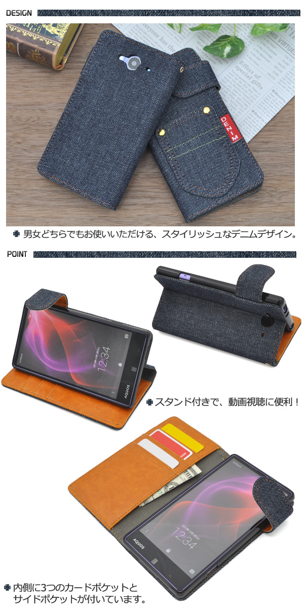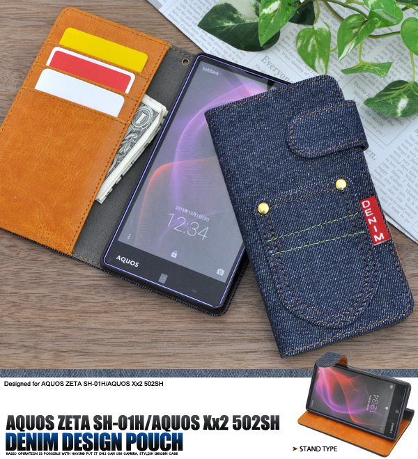 AQUOS ZETA SH-01H/AQUOS Xx2 502SH用 デニムデザインスタンドケースポーチ(ジーンズデザイン) | | | |