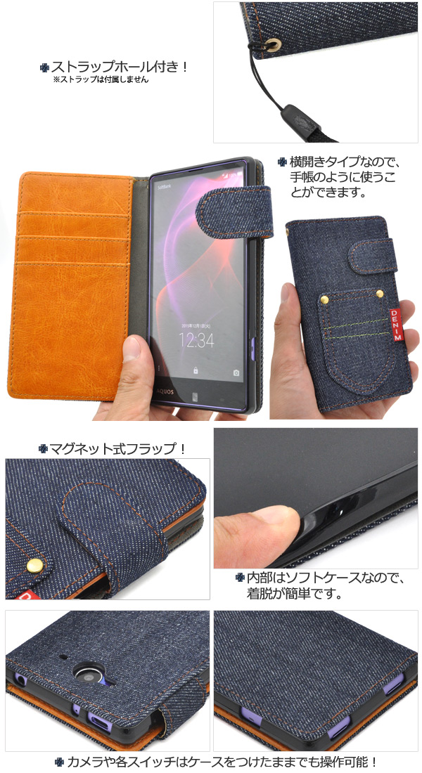 デニムデザインのAQUOS ZETA SH-01H/AQUOS Xx2 502SH用スタンドケースポーチ。 衝撃やキズなどからAQUOS ZETA SH-01H/AQUOS Xx2 502SHを守ります。 内部ケースはソフトケースなので、着脱が簡単です。 男女どちらでもお使いいただける、スタイリッシュなデニムデザイン。 内側は落ち着いたレザーデザインです。 背面を折り返すとスタンドとして使用できるので、動画視聴に便利です。 落下防止に便利なストラップホール付きです。 横開きタイプなので、手帳のように使うことができます。 また、内側に3つのカードポケットとサイドポケット付きです。 ※AQUOS ZETA SH-01H/AQUOS Xx2 502SHは付属しません。 ※ライセンス商品ではありません。 |