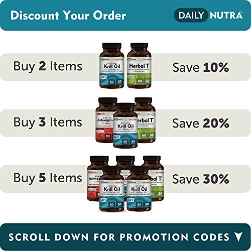 BETTER THAN FISH OIL: Omega-3 from Krill Oil is in phospholipid, water soluble form so it is more absorbable and doesn't pool on top of the stomach, prompting reflux and fishy aftertaste, like fish oil supplements can. Because Krill Oil is more absorbable, you don't need to take as much and the pill sizes are smaller than Fish Oil. RICH SOURCE OF OMEGA-3, EPA & DHA: With over 8,000 human studies, Omega-3 fatty acids found in our Neptune Krill Oil are among the most researched nutritional compounds in the world. Omega-3s have been shown to support healthy heart and joints, improve mood and cognitive health, and support a healthy menstrual cycle for women. PURE & SUSTAINABLE: Neptune Krill Oil is sustainably harvested from pure Antarctic Krill and is Friend of the Sea certified. Krill is a sustainable source of Omega-3 because of strong regulations, abundant populations, and low catch limits (less than 1% total biomass allowed). Compared to Fish Oil, Krill Oil is naturally more pure and sustainable because it is harvested from lower on the food chain. BUY IN BULK AND SAVE: Buy 2 DailyNutra items and save 10%, buy 3 DailyNutra items and save 20% or buy 5 DailyNutra items and save 30% on your entire order. Scroll down for promotion codes. 100% SATISFACTION GUARANTEED: We are so confident in the integrity and potency of our products, we offer an unconditional money back guarantee if you do not get the results you expected. Thanks for considering DailyNutra.Feature