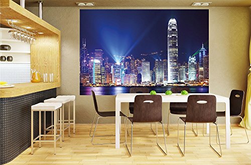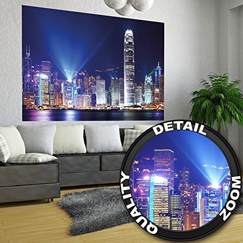 Hong Kong at night wall decoration - Mural China Motiv / beautiful XXL wallpaper by GREAT ART (55 Inch x 39.4 Inch/140 cm x 100 cm)