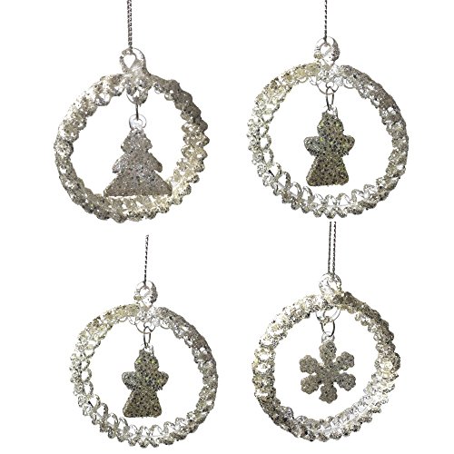 - STAR SNOWFLAKE ANGEL CHRISTMAS TREE. Set of 4 assorted glass ornaments are the perfect addition to your holiday decorations. Add more than 1 set to you cart and give theses away as gifts. They are made of a beautiful frosted, glitter glass. Each circle ornaemnt has a hanging charm in the middle.