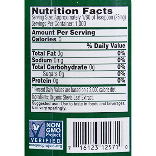 Studio : Wisdom Natural Publisher : Wisdom Natural Binding : Health and Beauty Product Description Compared with other Stevia extracts, Sweetleaf's superior taste, along with its Kosher certification, makes it the best value on the market. this extract has the sweetness of 300-360 times that of sugar, so it should be used sparingly, to personal taste. This product is extremely concentrated and has not been diluted with any fillers. 0