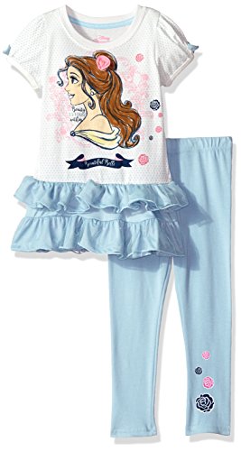 Toddler girls 2 piece legging set with short sleeve ruffle hem top and matching leggings with beauty and the beast's belleFeature