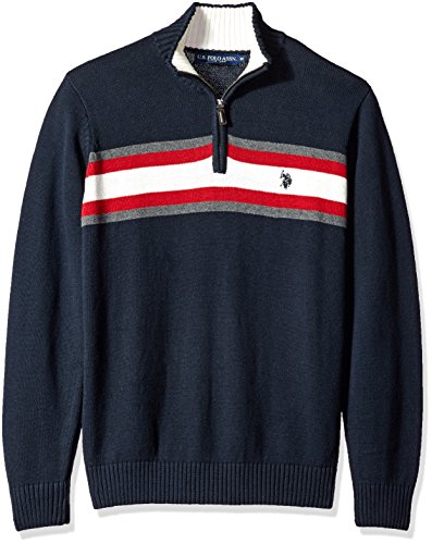 U.S. Polo Assn. Men's Tri-Color Chest Stripe 1/4 Zip Sweater