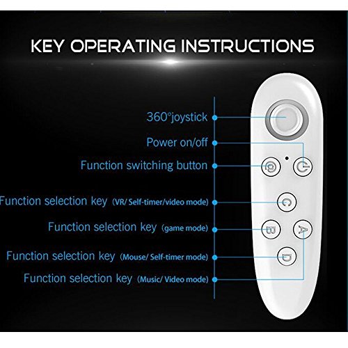 -. Feature : Play games, Support selfie shutter, Wireless mouse, Music or Video controller, Gamepad, PC remote controller, TV box controller, e-books flip though romote control。 / Small and light, easily fits in your pocket or on key ring。 / Three modes to choose: Mode 1: Android mouse/shutter/game; Mode2: Android music/shutter/game; Mode3: IOS shutter/game。 / It needs to switch the side key to IOS direction to realize mobile connection due to the unopened IOS system 。The C key is for self-timer and C/B for the volume up and down,A for mute。 / Best partner for 3D Virtual Reality Headset. Compatible with Android, IOS and PC systems, Small and light, ergonomic design, comfortable to use。