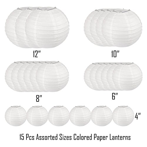 QUANTITY: Selizo white paper lanterns set come with 25 pcs assorted white round paper lanterns. Variety sizes choose that you can make elegant backdrop or hung around the room. Pretty for inside or outdoor party decorations