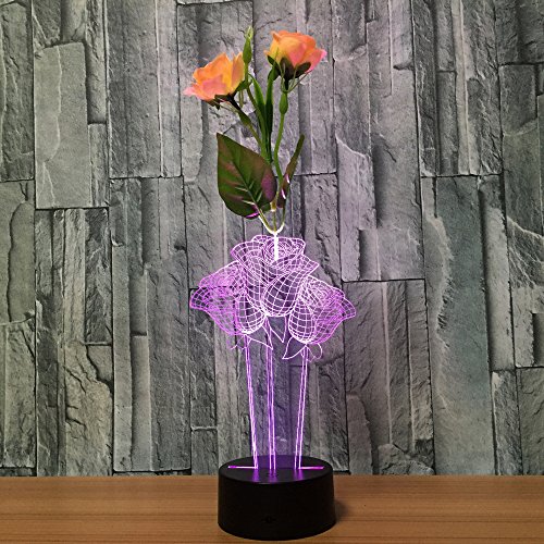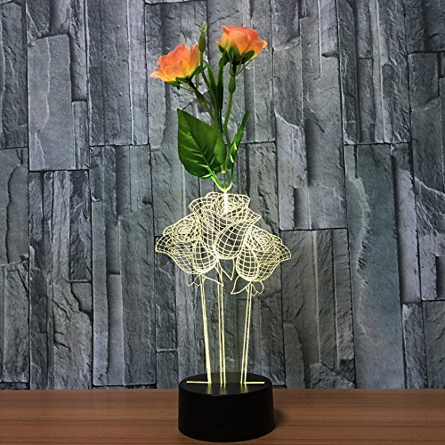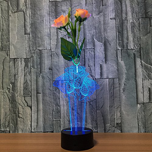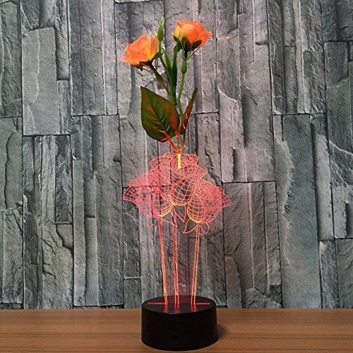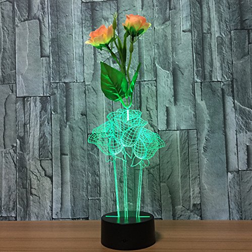 DowBier 3D Illusion Multi Colors USB Sleeping Night Light Flowerpot with Flower Desk Lamp (3 Roses)