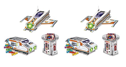 Studio : Beistle Publisher : Beistle Binding : Kitchen Product Description Bristle 54943 Space Centerpieces. The package contains 6 centerpieces. These centerpieces are made of printed board stock paper. There are 3 designs - a spaceship, a shuttle and a robot with a spinning head. You will receive 2 of each design in this package. They measure from 6 inches to 10.5 inches. Assembly required. These are great centerpieces to use for a space themed party!. 0