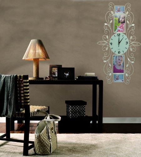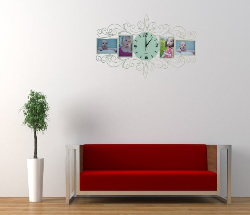 - Feature : Length 20" width 33". Glass dial size 8.75" is easy to view from a distance. / The dial can be rotated and the frame can be hung both horizontally (as shown) or vertically. / Requires one AA battery (not included). / Silent Non-ticking, high quality quartz battery operated movement. / It can hold 4 pictures of 5x7 inches.