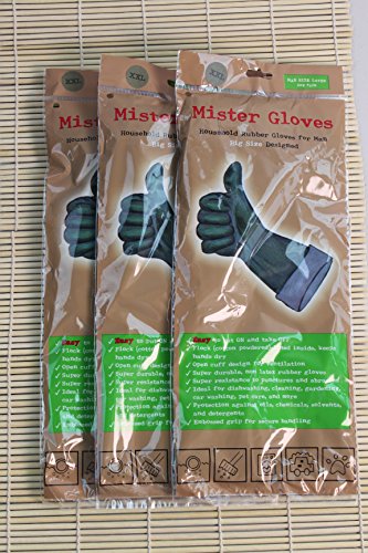Mister Gloves Household Rubber Gloves, 3 pairs for Mr. Men for Clean,Big Size XXL (= Man Size Large) Designed