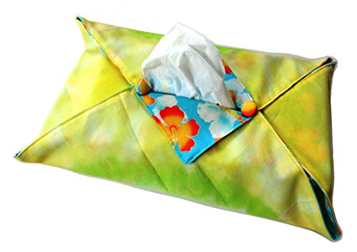-. Title : 手作り ティッシュボックスカバー ムラ染めイエロー&イエローグリーン 裏側ハワイアン柄 インテリア雑貨