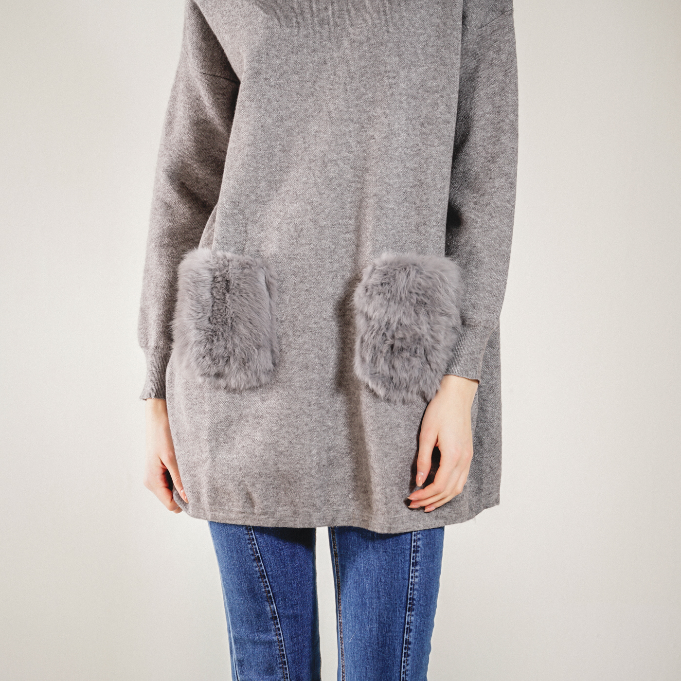 귀엽고 부드러운 앙고라 포켓이 포인트인 포근한 니트 탑입니다.