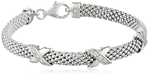 -. Title : Sterling Silver 3mm Mesh Bracelet with Cubic Zirconia Bracelet, 7.5"
