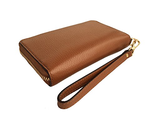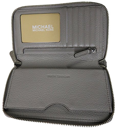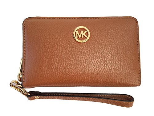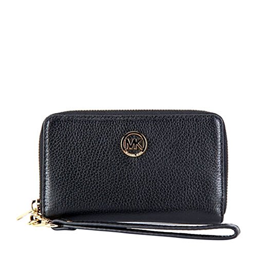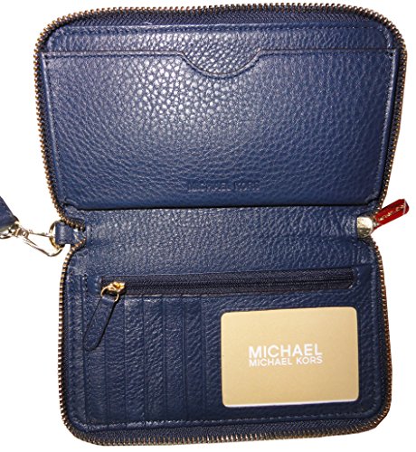 Binding : Apparel Product Description Wrapped in soft pebbled leather with golden tone hardware. This zip around design large flat multifunction phone case is accented with Michael Kors circular logo on the front. The leather and fabric interior features 5 card slots, a clear ID slot, and a slip compartment. It also offers a small zippered pocket and a back wall compartment that will fit most models of iPhones, Samsung Galaxy and Blackberry phones. It features a removable leather wristlet strap which enables you to carry it as a clutch as well. It measures approximately 6.5 inches (L) x 3.75 inches (H) x 1 inch (W). 0
