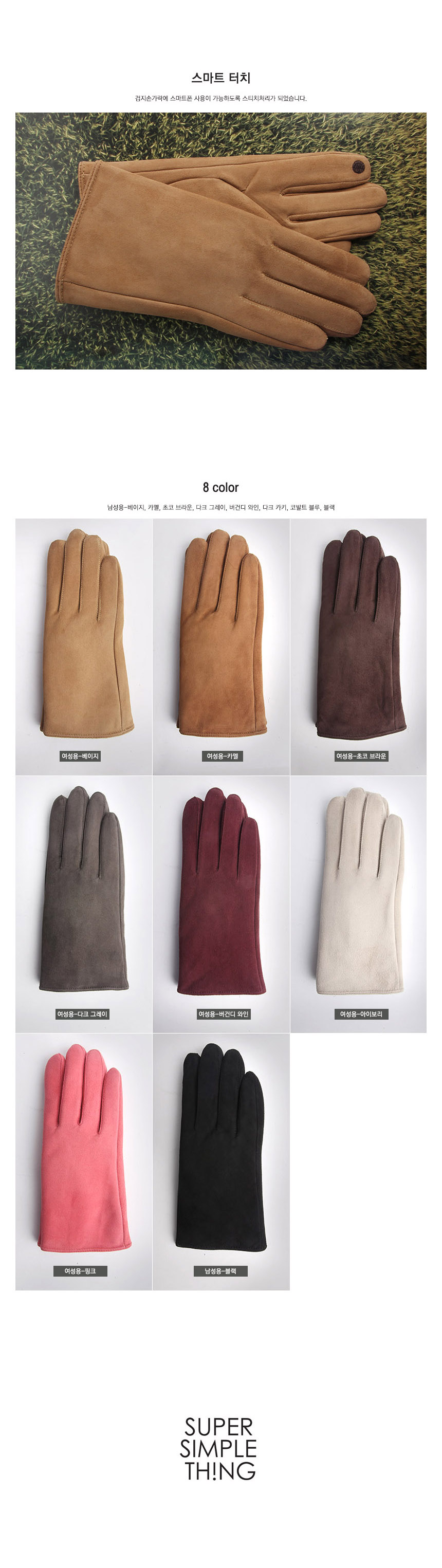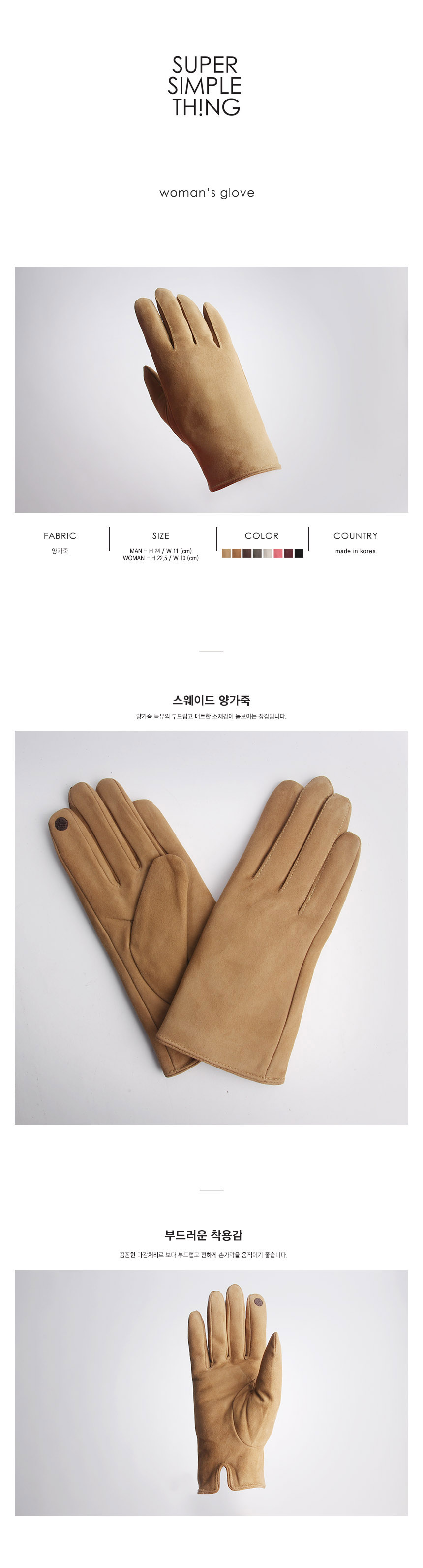상품명 : 스무스 양가죽 스웨이드 장갑 WOMAN [8컬러]